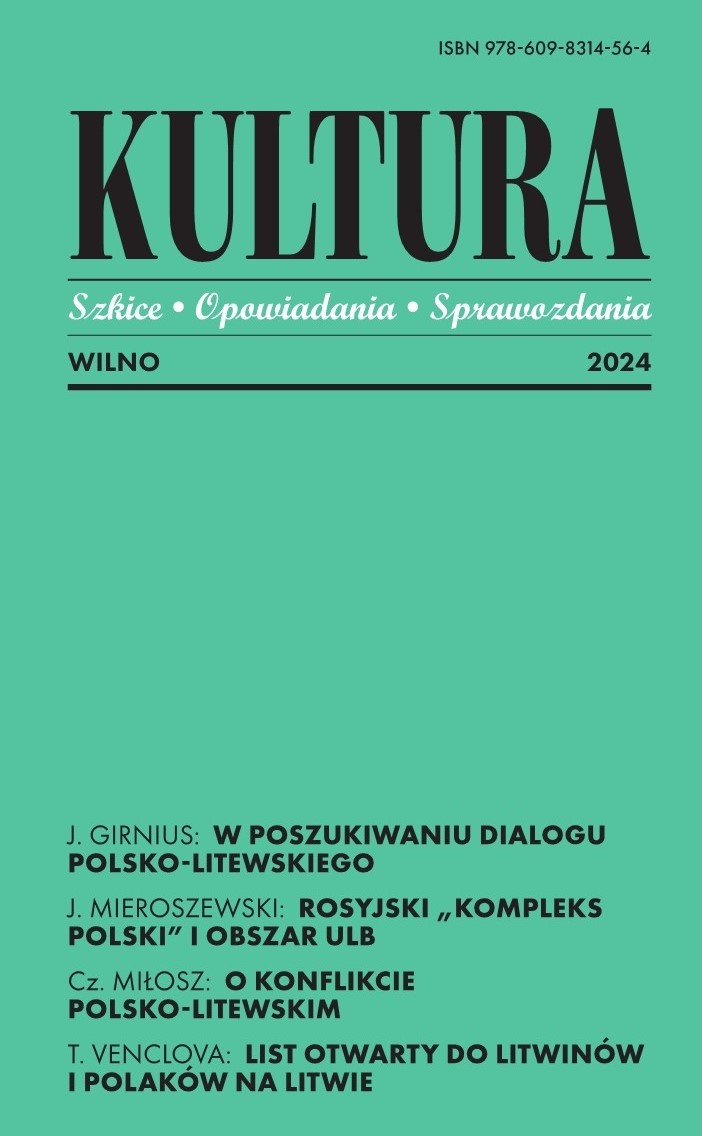 Šis Paryžiaus priemiestyje Maisons-Laffitte 1947–2000 m. leisto mėnraščio „Kultura“ numeris – spalvingas pasakojimas apie XX a. lenkų ir lietuvių santykius bei lenkų politinio išeivio Jerzy Giedroyco pastangas juos normalizuoti bei stiprinti remiantis ULB politine koncepcija. Ši koncepcija grindžiama įsitikinimu, kad be nepriklausomų Ukrainos, Lietuvos ir Baltarusijos valstybių negali egzistuoti nepriklausoma Lenkija. Šio specialiojo lietuviško numerio puslapiuose atgyja „Kultura“, „Zeszyty Historyczne“ ir šimtais laiškų megztas abiejų tautų dialogas, kontaktų bei idėjų visumos fragmentai. Jerzy Giedroyco 1966–1989 m. rengtas leidinys pasirodo tik dabar, bet nėra praradęs savo aktualumo ir svarbos ne tik dvišaliams santykiams, bet ir visai Vidurio Rytų Europai.